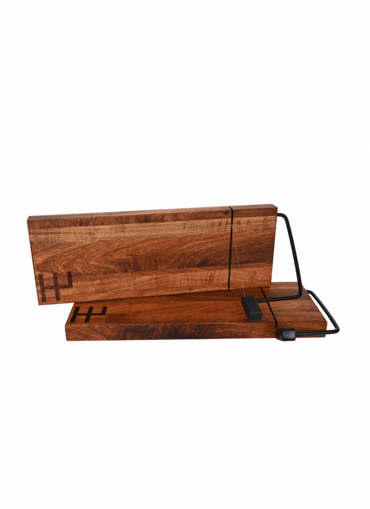 Branded Mesquite Cheese Board with Built-In Slicer Crafted from richly grained mesquite wood, this cheese board brings natural elegance and everyday functionality to your table. Featuring a seamlessly integrated wire slicer and a minimalist black metal arm, it’s designed for effortless serving—perfect for soft and semi-hard cheeses. The custom-branded mark adds a personal, signature touch, […]
